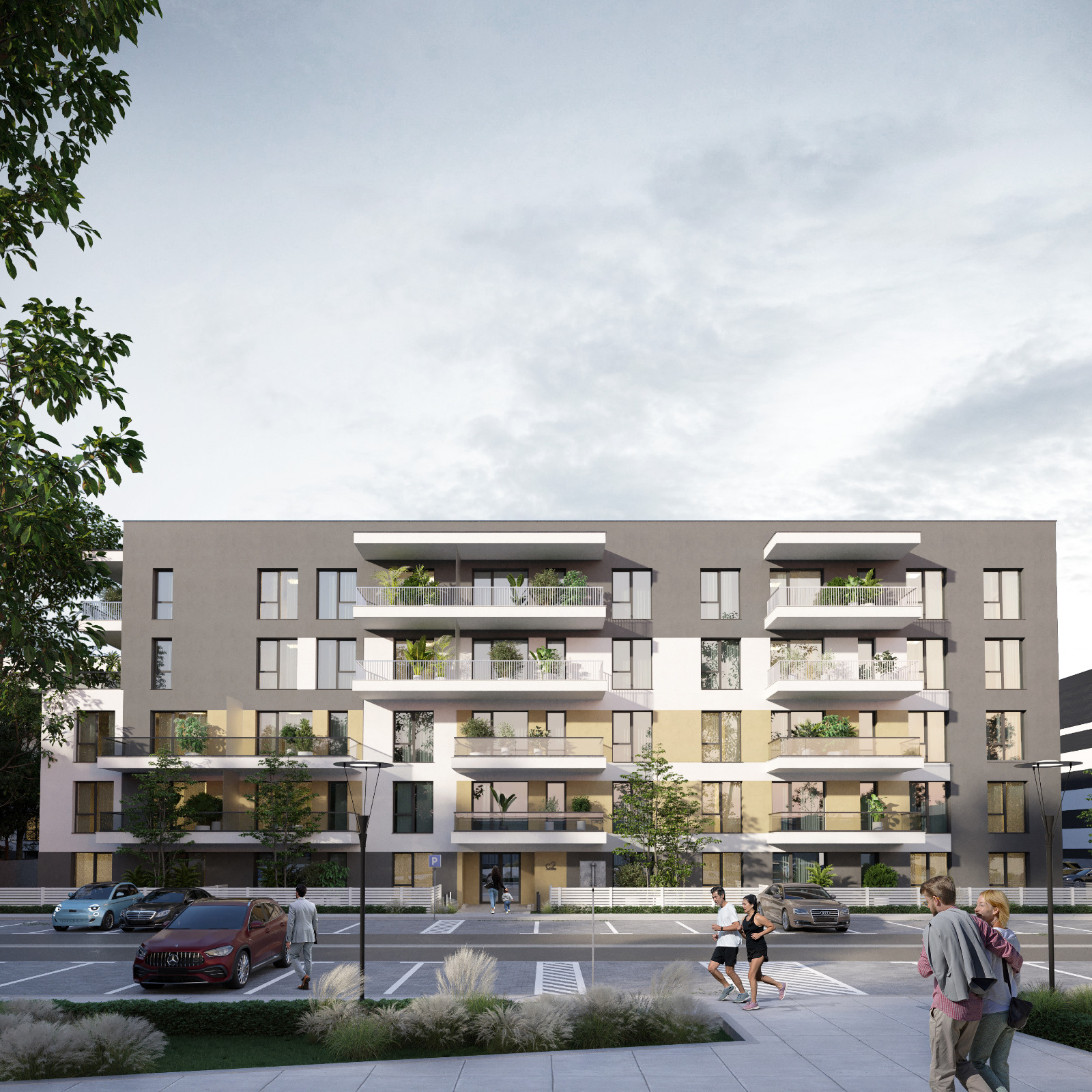 Proiectul include apartamente cu 1, 2, 3 și 4 camere, precum și unități cu grădină la parter. Suprafețele construite variază aproximativ între 54 mp și 141 mp, oferind opțiuni potrivite atât pentru locuire, cât și pentru investiții sau unități de tranziție, ansamblul fiind aproape de aeroporturile din capitală.5. Care este conceptul arhitectural și ce înseamnă regim redus de înălțime?