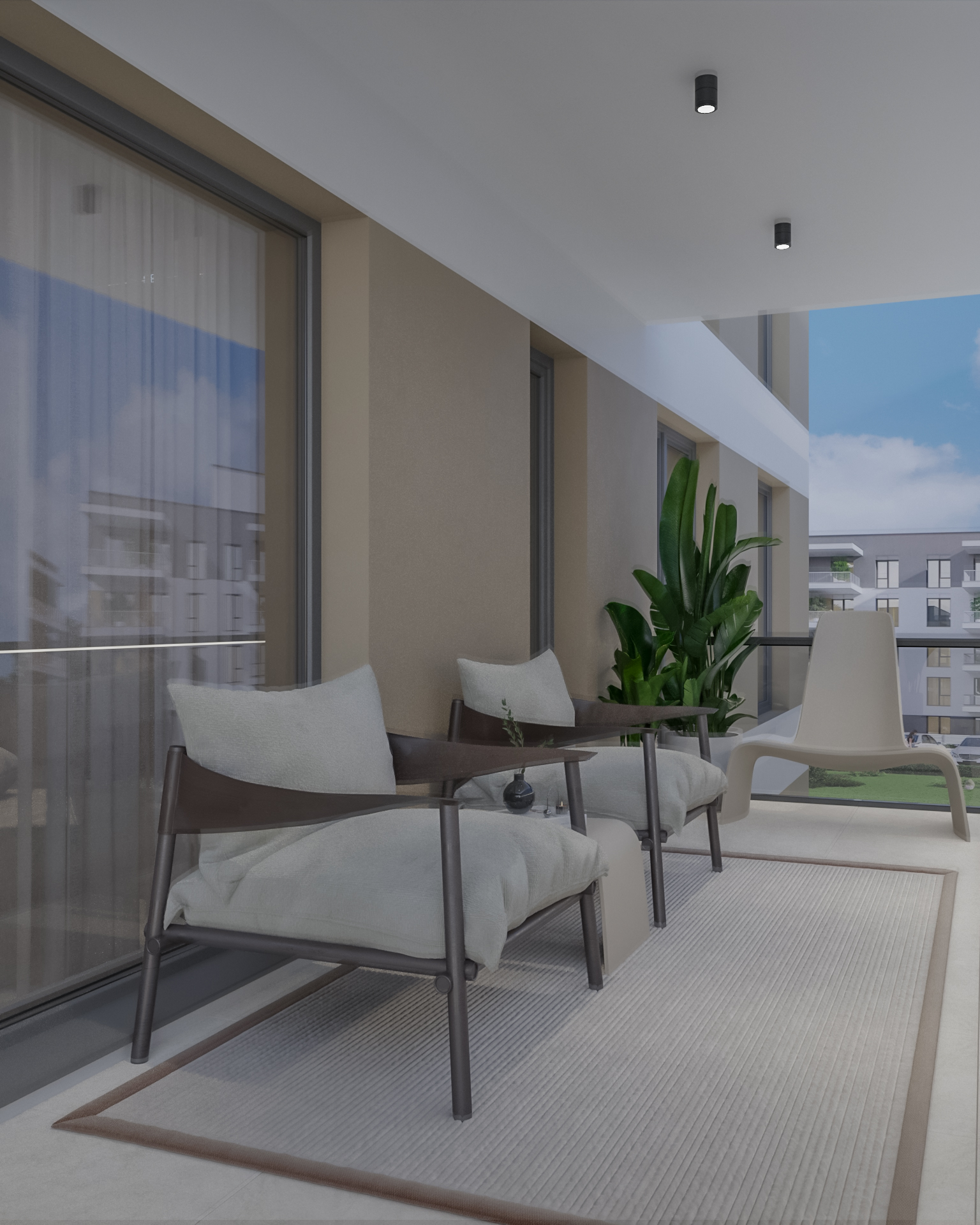 The project includes apartments with 1, 2, 3 and 4 rooms, as well as units with a garden on the ground floor. The built areas vary approximately between 54 sq m and 141 sq m, offering suitable options for both living and investment or transitional units, the complex being close to the capital's airports.